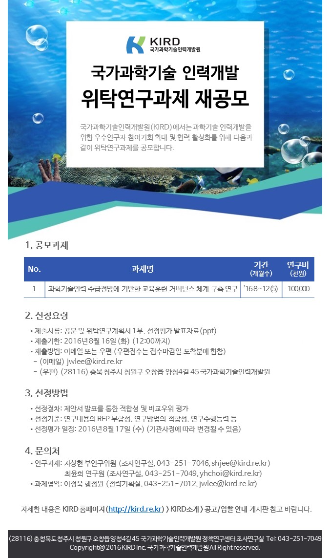 국가과학기술인력개발원 위탁연구과제 재공모